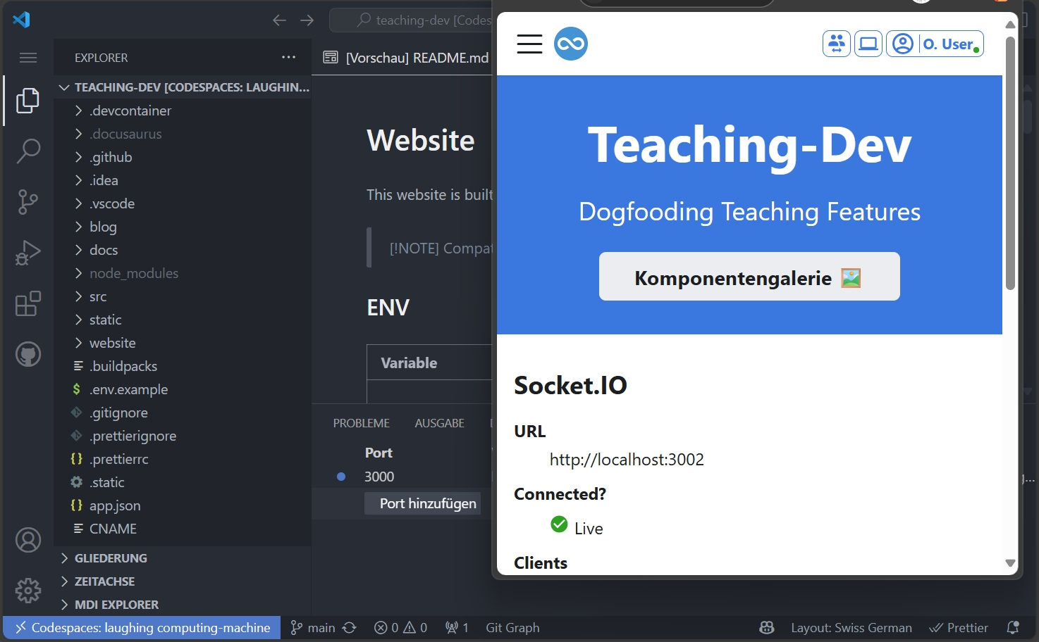 Wenn der Codespace bereit ist (ca. 1-2 Minuten), sollte die Seite so aussehen: